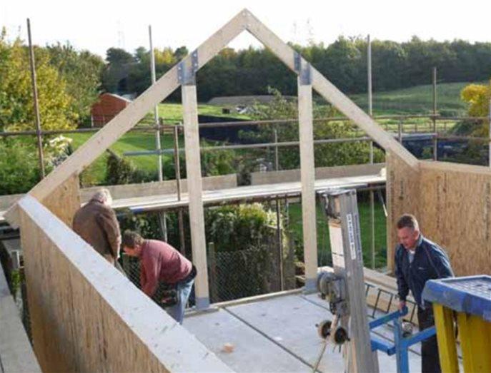 As well as using our Sips UK panel system the design also incorporated a Bison concrete plank system. This was loaded onto the steel beam over the garage doors.